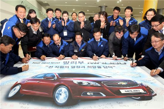 [아시아경제 최일권 기자] 한국GM은 인천 부평 본사 홍보관에서 말리부 출시 성공을 이어가고 ‘무결점 품질 확보’를 위한 결의대회를 가졌다.