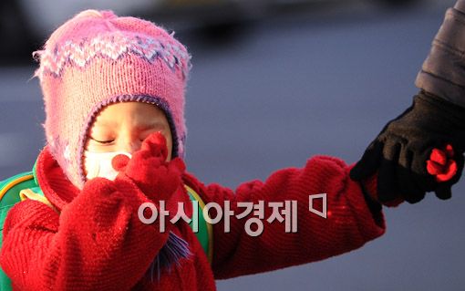 [아시아경제 양지웅 기자] 영하 8도까지 떨어진 매서운 동장군에 서울이 얼어붙은 16일 오전 서대문구 미동초등학교에 한 아이가 엄마 손을 잡고 걸어가고 있다.