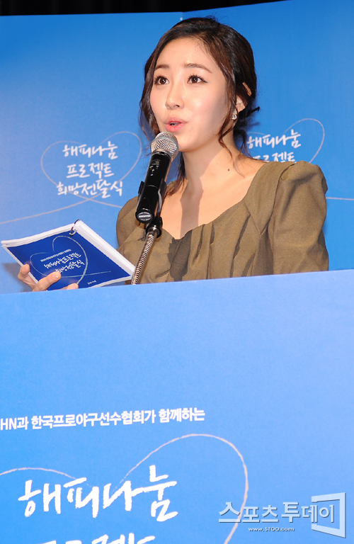 [성남=스포츠투데이 정재훈 기자] 23일 오전 NHN 사옥에서 NHN과 한국프로야구선수협회가 함께하는 해피 나눔 프로젝트 희망 전달식이 열렸다. 아나운서 최희가 전달식을 진행하고 있다.