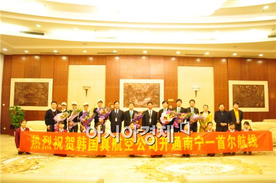 난닝은 광시장족자치구의 성도로 베트남과 국경을 마주하고 있는 중국 남단의 자치구다. 지난 24일 새벽 1시경에는 현지 난닝 오우 국제 공항에서 광서공항집단항공발전유한공사 조해군 부총경리와 난닝공항공사 호애국 상무부총경리 등 현지 관계자가 참석한 가운데 운항 첫 편에 탑승한 진에어의 운항승무원과 객실승무원을 대상으로 꽃다발을 증정하는 환영 행사도 진행됐다.