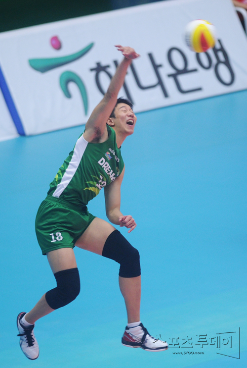 [성남=스포츠투데이 정재훈 기자] 31일 오후 성남실내체육관에서 열린 'NH 농협 2011-2012 V리그' KEPCO와 드림식스의 경기에서 신영석이 서브를 시도하고 있다.