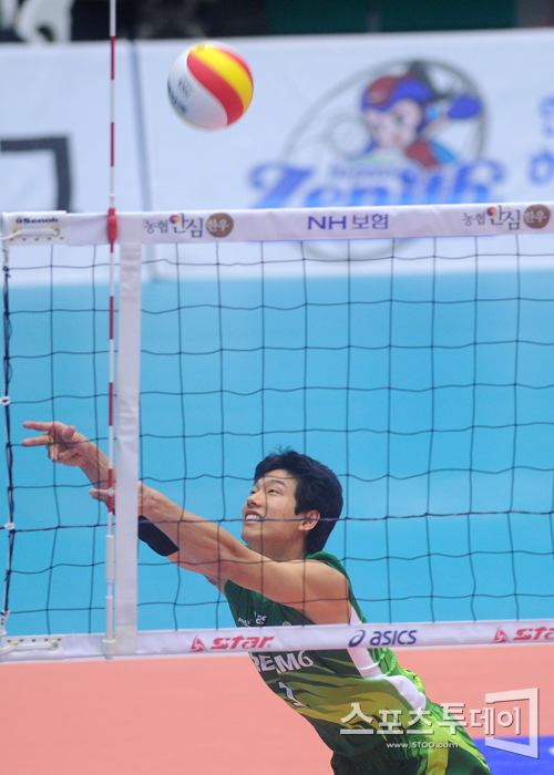 [성남=스포츠투데이 정재훈 기자] 31일 오후 성남실내체육관에서 열린 'NH 농협 2011-2012 V리그' KEPCO와 드림식스의 경기에서 송병일이 진영으로 넘어오는 공을 받아내고 있다.