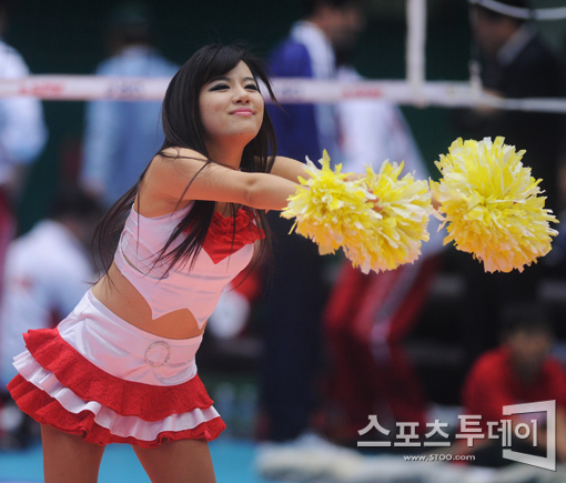 [성남=스포츠투데이 정재훈 기자] 31일 오후 성남실내체육관에서 열린 'NH 농협 2011-2012 V리그' KEPCO와 드림식스의 경기 중간 공연을 펼치며 흥을 돋구는 치어리더.