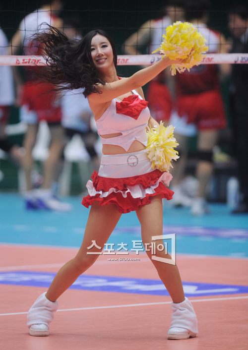 [성남=스포츠투데이 정재훈 기자] 31일 오후 성남실내체육관에서 열린 'NH 농협 2011-2012 V리그' KEPCO와 드림식스의 경기 도중 공연을 펼치는 KEPCO 치어리더.