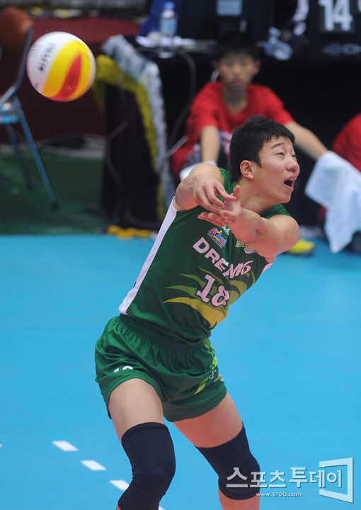 [성남=스포츠투데이 정재훈 기자] 31일 오후 성남실내체육관에서 열린 'NH 농협 2011-2012 V리그' KEPCO와 드림식스의 경기에서 리시브 범실로 서브에이스를 내주는 신영석.