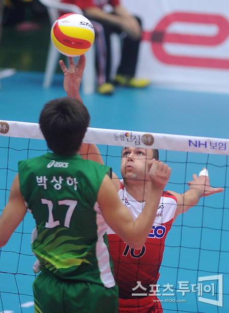 [성남=스포츠투데이 정재훈 기자] 31일 오후 성남실내체육관에서 열린 'NH 농협 2011-2012 V리그' KEPCO와 드림식스의 경기에서 안젤코가 공격을 시도하고 있다.