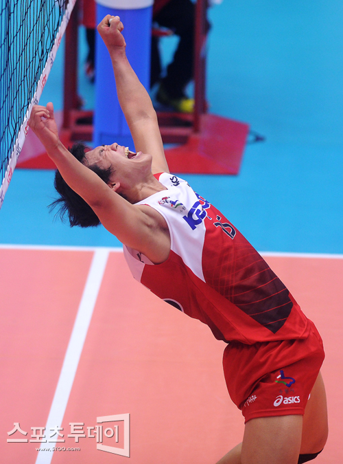 [성남=스포츠투데이 정재훈 기자] 31일 오후 성남실내체육관에서 열린 'NH 농협 2011-2012 V리그' KEPCO와 드림식스의 경기에서 경기를 마무리 지은 뒤 포효하는 서재덕.