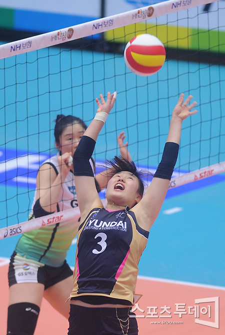 [성남=스포츠투데이 정재훈 기자] 31일 오후 성남실내체육관에서 열린 'NH 농협 2011-2012 V리그' 여자부 현대건설과 GS칼텍스의 경기에서 염혜선이 동료에게 공을 이어주고 있다.
