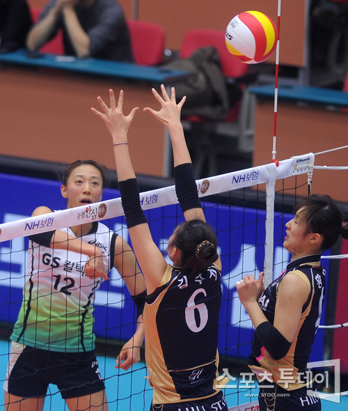 [성남=스포츠투데이 정재훈 기자] 31일 오후 성남실내체육관에서 열린 'NH 농협 2011-2012 V리그' 여자부 현대건설과 GS칼텍스의 경기에서 공격을 시도하는 한송이.