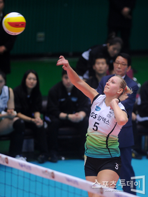 [성남=스포츠투데이 정재훈 기자] 31일 오후 성남실내체육관에서 열린 'NH 농협 2011-2012 V리그' 여자부 현대건설과 GS칼텍스의 경기에서 공격을 시도하는 로시.