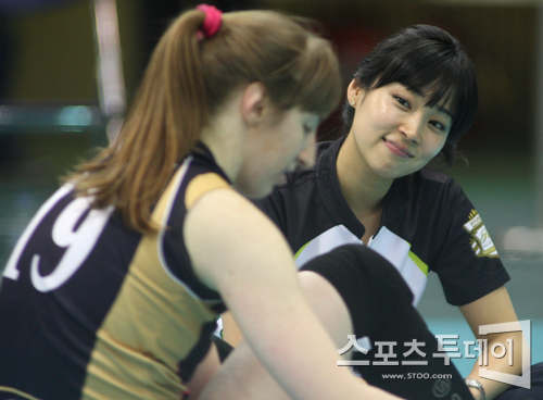 [수원=스포츠투데이 정재훈 기자] 현대건설이 22일 오후 수원실내체육관에서 열린 'NH 농협 2011-2012 V리그' GS칼텍스와의 경기에서 3:0 완승을 거뒀다. 현대건설 통역 이세윤씨가 경기를 마친 브란키차를 지긋이 바라보고 있다.