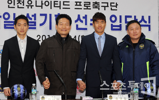 [인천=스포츠투데이 정재훈 기자] 인천 유나이티드에 입단한 김남일과 설기현이 24일 오후 인천시청에서 입단식을 가졌다.