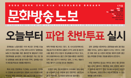 한편 MBC 노동조합은 25일 오전 9시부터 “공영방송 MBC의 정상화를 위한 총파업”에 돌입하기 위한 찬반투표를 시행하고 있다. 김재철 사장의 퇴진을 목표로 27일 오후 6시까지 이어지는 이 투표에서 조합원 과반수가 참여해 과반수가 찬성 의사를 표시하면 파업 안은 가결된다.