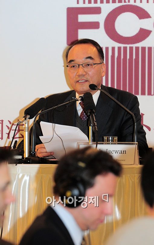 [아시아경제 윤동주 기자] 박재완 기획재정부 장관이 30일 서울 중구 프레스센터에서 열린 외신기자 간담회에 참석해 모두 발언을 하고 있다.
