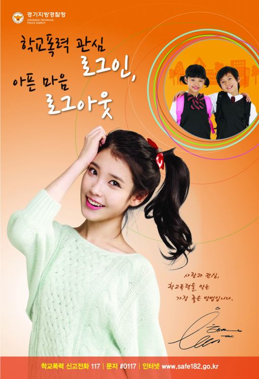 경기경찰청 관계자는 "지진희 씨와 가수 아이유는 청소년들이 좋아하는 연예인으로 이 들이 참여한 포스터가 학교폭력 문제의 심각성을 알리고 신고를 유도하는 데 크게 기여할 것으로 기대한다"고 말했다.