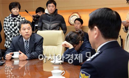 [아시아경제 양지웅 기자] 조현오 경찰청장이 9일 서울 서대문구 미근동 경찰청사에서 지난달 수원에서 살해당한 20대 여성의 유가족들과 면담을 하고 있다.