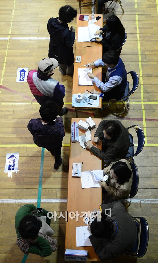 [아시아경제 윤동주 기자] 11일 서울 마포구 상암동 상암중학교에 마련된 상암동 제4투표구에서 시민들이 소중한 한 표를 행사하고 있다.