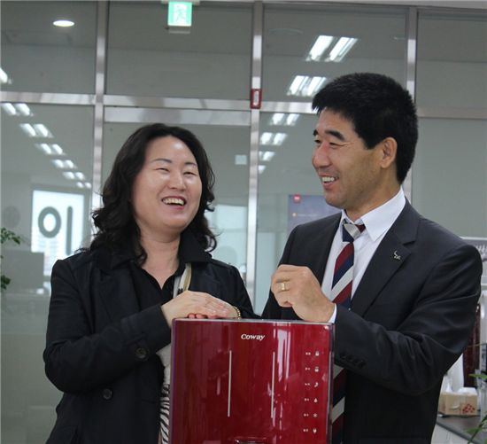 10년 넘게 해온 아동복 의류 매장을 접은 것도 그래서다. 요양원 치료를 병행하다 보니 도저히 매장 운영을 할 수 없었던 것. 요양을 마치고 앞날을 모색하던 그가 떠올린 게 웅진코웨이다. "환자에게 가장 중요한 게 물과 공기잖아요. 정수기 등 웅진코웨이 제품들을 쓰다 보니 회사에 대한 신뢰가 생겼고, 내친 김에 입사까지 이어졌습니다."