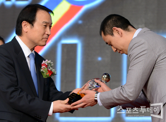 [스포츠투데이 정재훈 기자] 23일 오후 장충체육관에서 NH농협 2011-2012 V리그 시상식이 열렸다. 현대캐피탈 최태웅이 특별수훈상을 수상하고 있다.