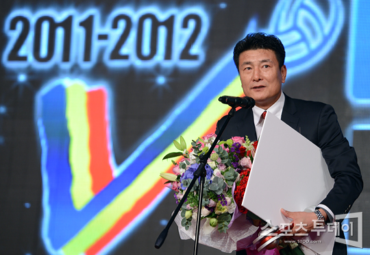 [스포츠투데이 정재훈 기자] 23일 오후 장충체육관에서 NH농협 2011-2012 V리그 시상식이 열렸다. 우승감독상을 수상한 인삼공사 박삼용 감독이 소감을 밝히고 있다.