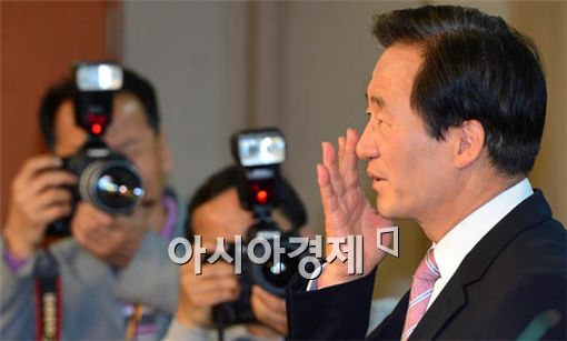 [아시아경제 양지웅 기자] 새누리당 정몽준 전 대표가 29일 국회 정론관에서 열린 대선 출마 선언 기자회견에 앞서 취재진과 대화를 나누고 있다.