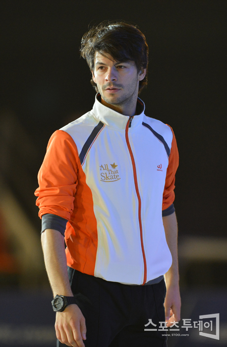 [스포츠투데이 정재훈 기자] 3일 오후 올림픽공원 체조경기장 특설아이스링크에서 '김연아 아이스쇼-E1 올댓스케이트 스프링 2012' 리허설 및 기자회견이 열렸다. 스테판 랑비엘이 공연 준비를 하고 있다.