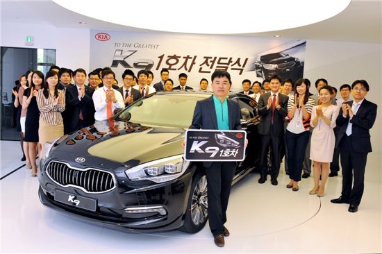 기아자동차는 국내영업본부 사옥(서울 압구정 소재)에서 ‘K9’ 1호차 전달식을 갖고 본격 출고에 들어갔다고 7일 밝혔다.