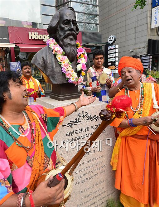 [아시아경제 양지웅 기자] 7일 서울 혜화역 1번 출구 타고르 흉상 앞에서 열린 대학로 거리공연 'Good Street : INDIA'에서 인도 전통 음악 '뿌르나 다스 바울'이.
