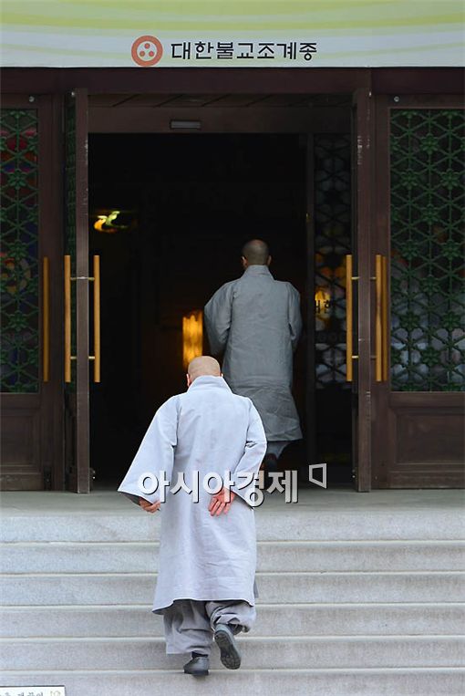 [아시아경제 양지웅 기자] 최근 승려들의 억대 도박으로 조계종단에 파장이 일고 있는 가운데 11일 서울 조계사 박물관으로 스님들이 들어서고 있다.