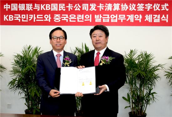최기의 국민카드 사장은 "이번 은련과의 제휴로 실물 경제 뿐 아니라 금융과 지급결제 시장에서도 빠르게 성장하고 있는 중국 시장 진출의 발판을 마련하게 됐다"며 "카드 비즈니스 영역 외에 KB금융그룹 차원의 중국 내 사업 확대에도 기여할 수 있도록 노력해 나갈 계획"이라고 말했다.
