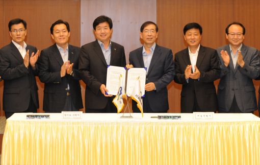 수원시와 서울시는 16일 서울시청 대회의실에서 박원순 서울시장, 염태영 수원시장이 참석한 가운데 '수원시와 서울시의 공동체적 상생발전을 위한 우호교류 협약 체결식'(사진)을 가졌다.