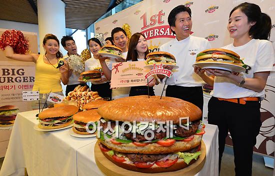 [아시아경제 양지웅 기자] 복합 외식공간 CJ 푸드월드와 빕스버거 1주년을 맞아 17일 서울 CJ제일제당센터에서 개최된 '빅버거 먹기 대회'에서 참가자들이 대회에 사용될 버거를 선보이고 있다. 이번 대회에서 우승한 팀에게는 소정의 상품과 함께 자신들의 이름으로 중구지역 공부방 아동들에게 버거 선물을 전달할 기회가 주어질 예정이다.