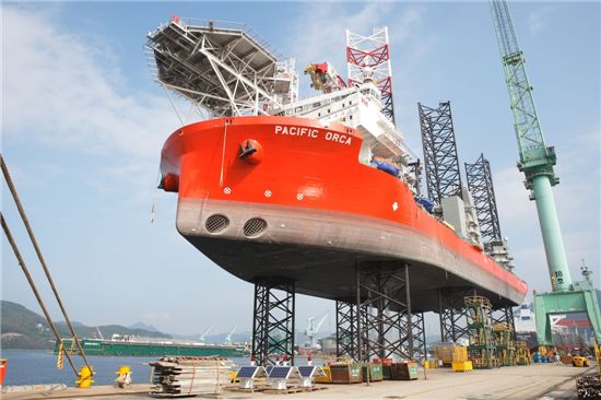 삼성중공업 삼성중공업 close 증권정보 010140 KOSPI 현재가 34,400 전일대비 400 등락률 +1.18% 거래량 11,182,486 전일가 34,000 2026.04.24 15:30 기준 관련기사 코스피, 사흘째 최고치로 마감…장중 6500선 '터치' 4배 투자금으로 기회 살려볼까? 개별 종목은 물론 ETF도 매입 가능 코스피, 하루 만에 사상 최고치 경신…6417.93 마감 은 'PACIFIC ORCA'호의 건조를 마치고 선주사인 싱가포르 SPO(Swire Pacific Offshore)社에 인도된다고 25일 밝혔다.