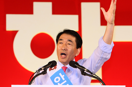[광주=이민우 기자] 새누리당 대선 후보들의 경선 레이스가 26일 광주에서 본격적으로 막을 올렸다. 첫 합동연설회가 열린 광주 염주체육관은 새누리당의 열세 지역임에도 불구하고 3000여 명의 당원들이 몰려 북새통을 이뤘다. 박근혜 전 비상대책위원장과 비박 주자들의 날선 공방이 오간 가운데 안상수 전 인천시장의 영상이 '숨은 1%의 재미'를 더했다.