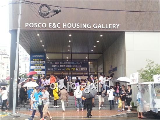 [아시아경제 박미주 기자]"공급 과잉이라는 얘기도 나와서 분양이 잘 될까 걱정했는데 궂은 날씨에도 사람들이 많이 와서 놀랐다." (박동준 포스코건설 분양소장)