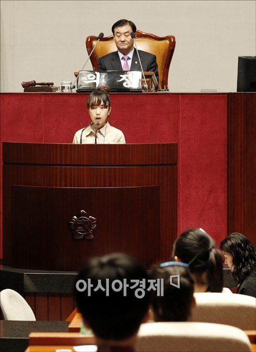 [아시아경제 윤동주 기자] 14일 서울 여의도 국회에서 제8회 대한민국 어린이 국회가 열리고 있다. 어린이 국회는 전국 국회의원 선거구 기준 246개 초등학교에서 선정된 어린 이 국회의원들이 법률안과 질문서를 작성하여 국회에 제출하고, 국회에서 직접 발표할 수 있는 기회를 제공하는 행사다.