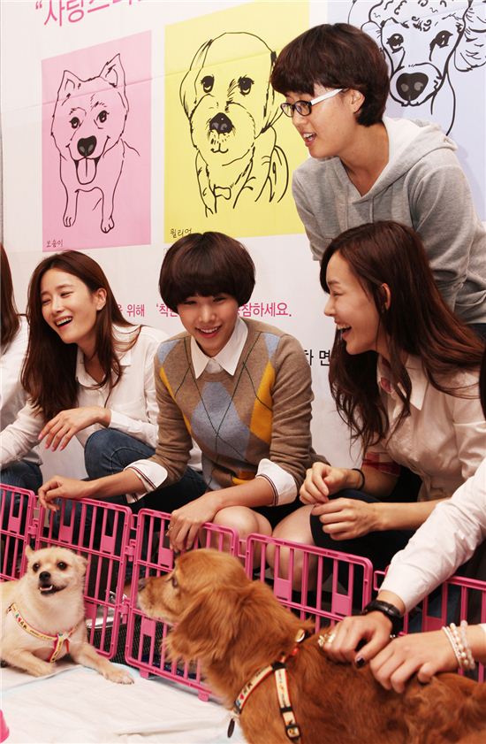 [아시아경제 박소연 기자]3일 오전 서울 강남구 신사동 LG패션 서관 1층, 라움카페에서 열린 LG패션 헤지스액세서리의 반려동물 입양캠페인 ‘I LOVE PET, MEET THE FAMILY’ 행사에서 전속모델인 배우 조윤희씨와 여성 모델들이 동물자유연대 소속 유기 동물들과 함께 포즈를 취하고 있다.