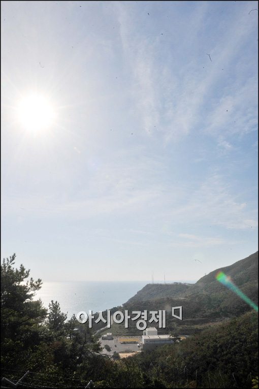 아시아경제]나호로 3차 발사를 이틀 앞둔 24일 고흥군 나로우주센터 발사대 하늘은 화창한 날씨다.