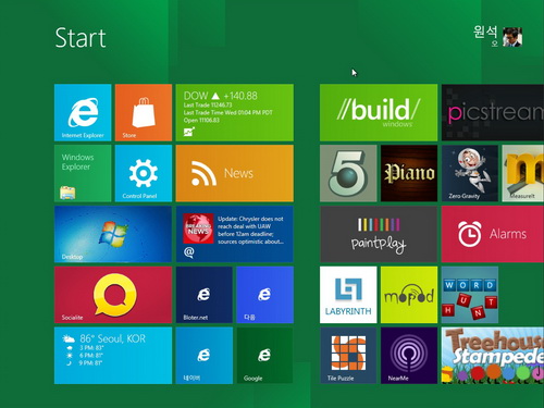 윈도8은 기존의 윈도와는 다른 사용자 환경(UI)을 제공한다. 우선 첫 화면은 타일 모양의 아이콘으로 구성됐다. 스마트폰과 태블릿 등 모바일 기기와의 호환성을 위해서다. 사용자는 클릭 한번으로 원하는 앱과 콘텐츠를 바로 실행할 수 있도록 해 접근성을 높였다.