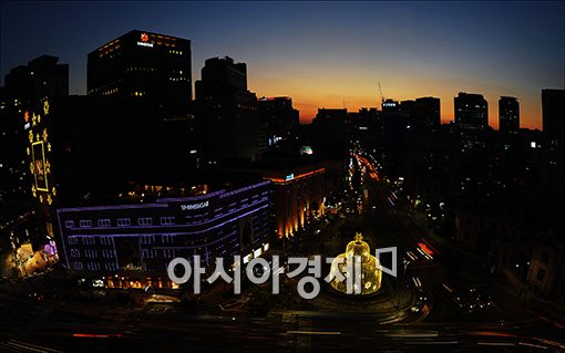 [아시아경제 백소아 인턴 기자] 연말 시즌을 맞아 28일 서울 중구 신세계백화점 외벽에 조명이 도심의 밤을 수놓고 있다.