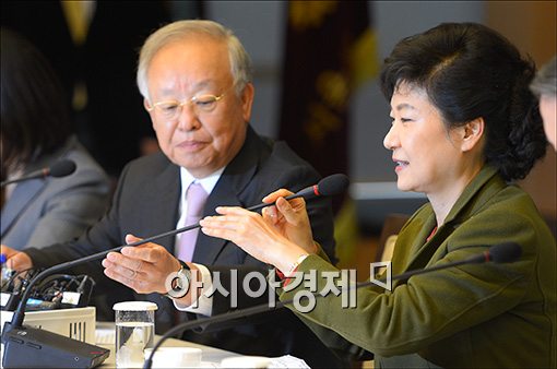[아시아경제 윤동주 기자] 박근혜 새누리당 대선 후보가 8일 서울 중구 대한상의에서 열린 경제5단체장 간담회에서 모두 발언을 하고 있다.