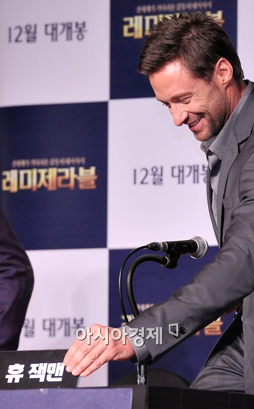[아시아경제 송재원 기자] 배우 휴 잭맨이 26일 오후 서울 강남구 역삼동에 위치한 리츠칼튼 호텔 그랜드볼룸에서 열린 영화 ‘레미제라블(감독 톰 후퍼, 프로듀서 카메론 맥킨토시)’ 내한기자회견에 참석해 포토타임을 갖고 있다.