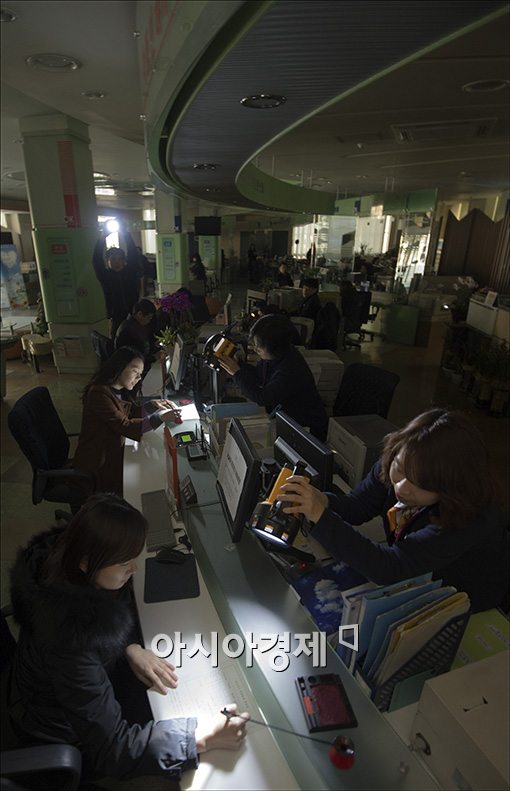 [아시아경제 윤동주 기자] 정전대비 위기 대응 훈련이 전국적으로 실시된 10일 서울 서초구청 OK 민원센터 공무원들이 LED 비상 렌턴을 이용해 민원 처리 및 응대 훈련을 하고 있다.
