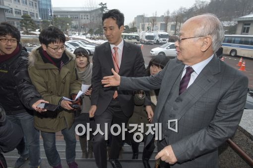 [아시아경제 윤동주 기자] 김용준 대통령직 인수위원회 위원장이 13일 서울 종로구 삼청동 대통령직 인수위원회로 출근하고 있다.