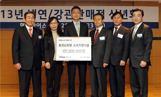 [아시아경제 박민규 기자] 현대하이스코 판매점들이 23일 소아 난치병 어린이들을 위한 기부행사를 펼쳤다.