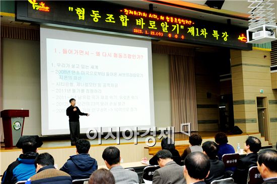 정원각 한국협동조합학회 사무국장이 강사로 나선 이번 특강은 '협동조합의 역사와 국내외 현황' 그리고 '성공방안과 미래 전망'을 다뤘다.