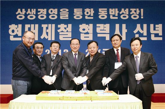$pos="C";$title="";$txt="";$size="550,366,0";$no="2013012514193575030_1.jpg";@include $libDir . "/image_check.php";?>현대제철은 25일 충남 당진제철소에서 박승하 부회장(가운데)을 비롯한 구매본부 주요 임직원과 180여개 협력업체 대표들이 참석한 가운데 동반성장을 다짐하는 행사를 가졌다.