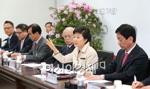 [아시아경제 윤동주 기자] 박근혜 대통령 당선인이 25일 서울 삼청동 대통령직인수위원회에서 인수위 경제1분과의 업무보고를 받기에 앞서 모두발언을 하고 있다.