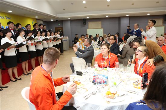 정 사장은 선수단을 위해 첫날 밤 경기도 의왕시에 있는 코레일인재개발원에서 환영만찬회를 열었다. 이 자리엔 정 사장과 폴 멩크팰드 주한네덜란드 대사, 나경원 ‘2013 평창동계스페셜올림픽’ 조직위원장, 네덜란드선수단, 관계자 등 80여명이 참석했다.