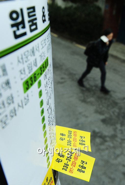 [아시아경제 백소아 기자] 대학가 주변 원룸들의 과잉공급 문제가 나타나고 있는 가운데 28일 서울 마포구 대학가 주변 골목길에 하숙과 원룸을 광고하는 전단들이 빼곡히 붙어 있다. 대학과 지자체의 저가형 공공기숙사 공급 정책까지 더해지면서 대학가 원룸 시장의 공급 과잉은 한동안 지속될 것으로 보인다.